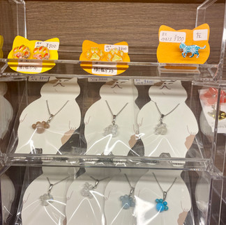 展示商品:ピアス・イヤリング・ネックレス・猫の首輪・キーホルダー・ブローチ等
